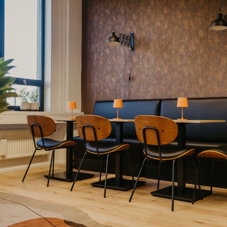 Deze witte kantoorruimte mocht een stoere, maar toch warme ruimte worden. Naast voldoende werkruimte moet er ook vergaderd èn gezellig geluncht kunnen worden. Door het gebruik van de bistrotafels hou je de ruimte flexibel en kun je de tafel creëren die voor dat moment wenselijk is. De horecabank is een knipoog naar dit vroegere NS pand. Verder voegde ik aan de werkzijde van de ruimte een wand toe waar iedereen een item neer kan zetten of hangen wat iets over deze persoon vertelt. De persoonlijke touch in deze ruimte. Ik noem het de 'KYC'-wall (know your colleagues-wall), dè perfecte ijsbreker voor klanten en nieuwe collega's,.